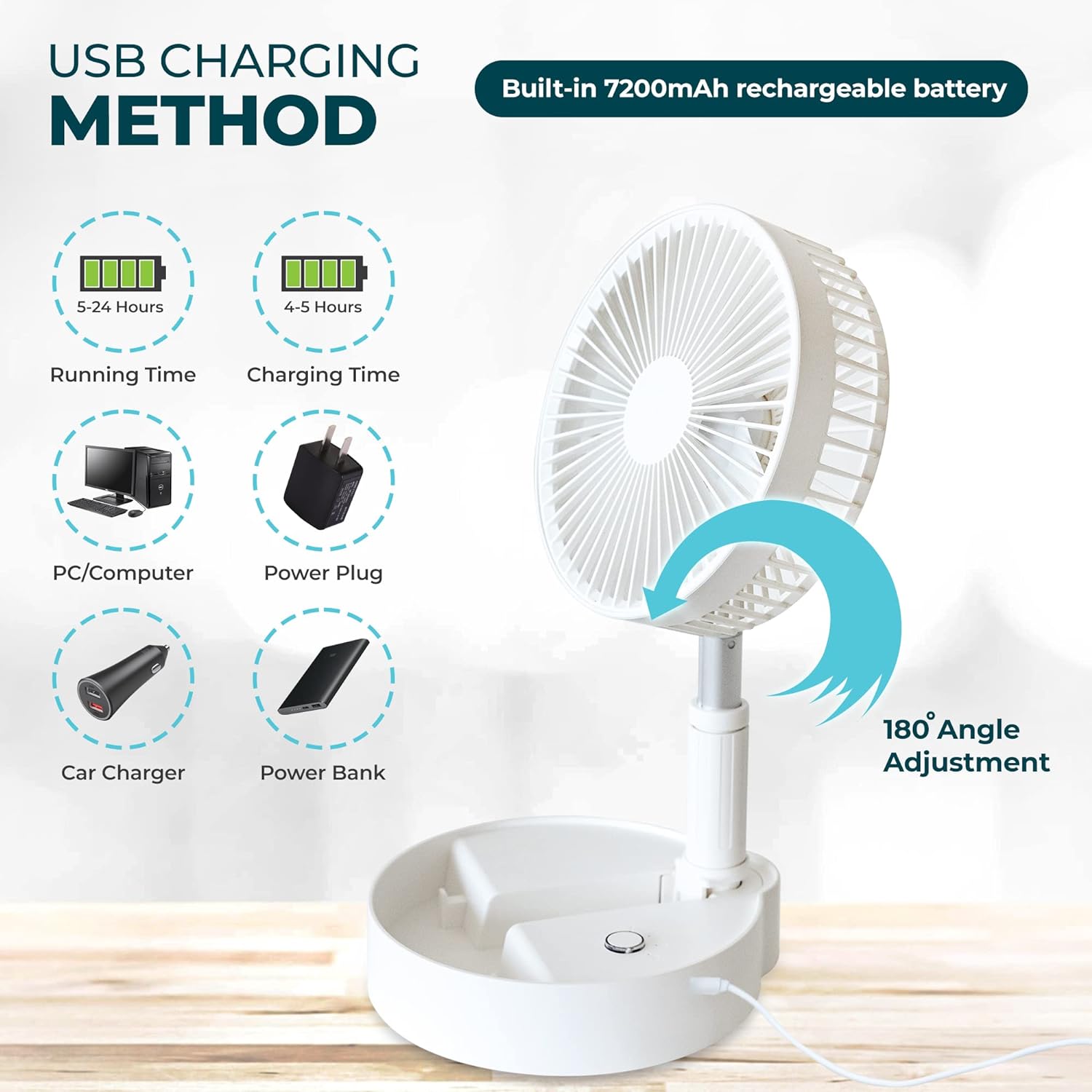 تتميز المروحة بتصميم قابل للطي يجعلها سهلة الحمل والتخزين، مما يجعلها مثالية للاستخدام في أي مكان.